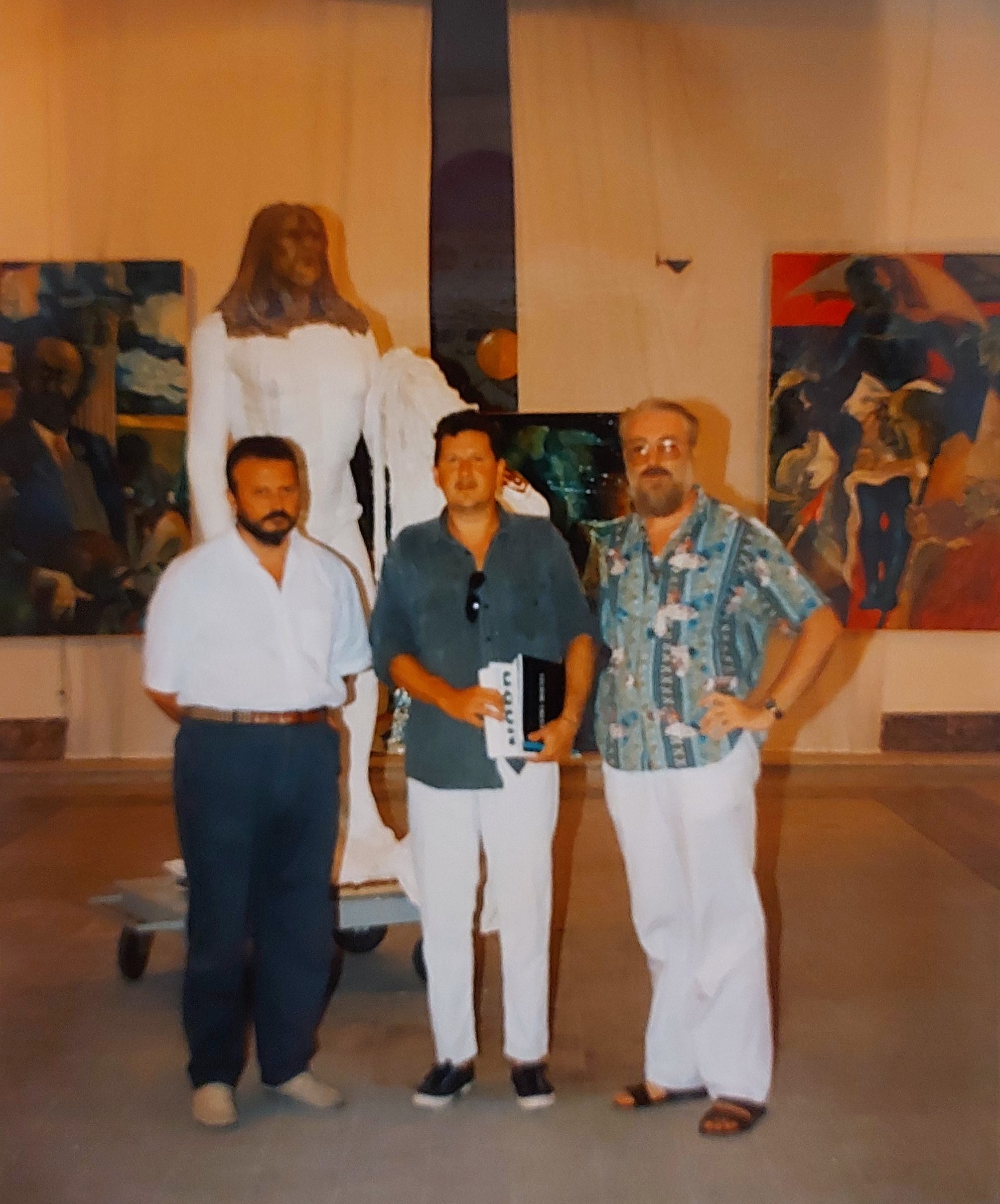 Il giornalista Piero Fagone e il critico d'Arte Vittorio Fagone con l'artista Franco Spaticchia